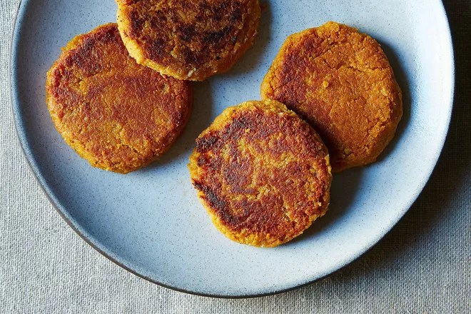 - Add all ingredients but the olive oil to a food processor. Pulse until the mixture is evenly incorporated and the chickpeas are broken down, but still have texture. Add more bread crumbs if the mixture is so moist that you won’t be able to shape it into cakes.