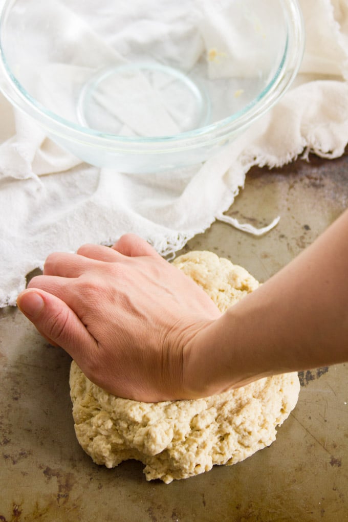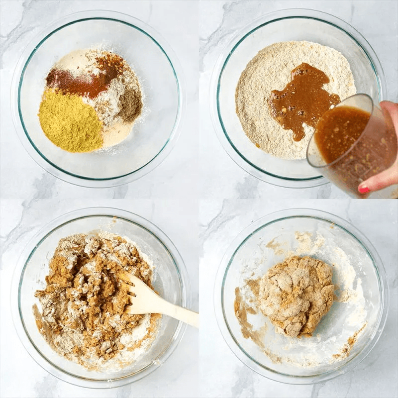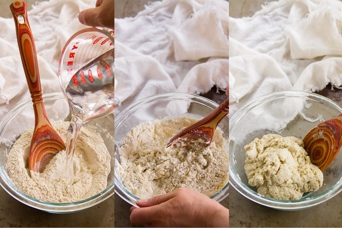 - Mix everything together with a spoon, and then once everything starts to come together, begin to mix with your hands and then knead the mixture for about 2 minutes. It should become firm and hold together very well.